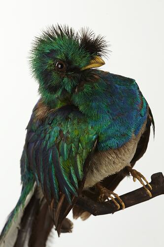 This specimen, a male with breeding plumage, was collected at an unknown date from Guatemala. It was purchased by the Museum from the famous British ornithologist and bird artist, John Gould (1804-1881) between 1858 and 1869.